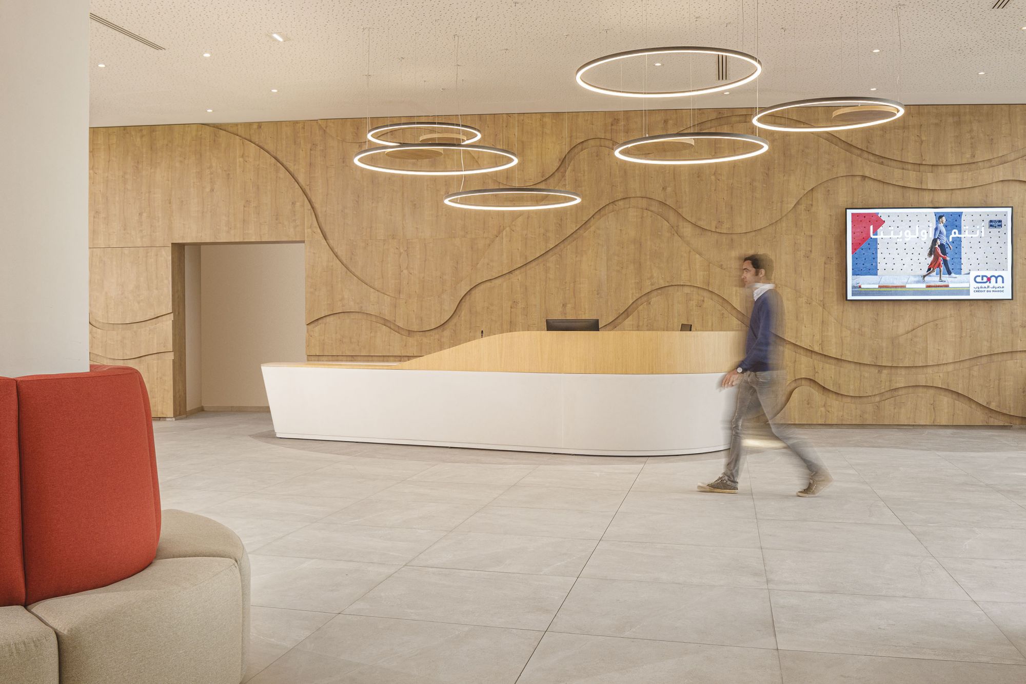 Nos équipes de Casablanca ont accompagné le Crédit du Maroc, filiale du groupe Holmarcom, pour concevoir et réaliser son nouveau siège social sur le site historique des Arènes, nouveau site unique qui regroupe la majorité des directions de la banque sous un même toit, réparties auparavant sur plusieurs bâtiments.