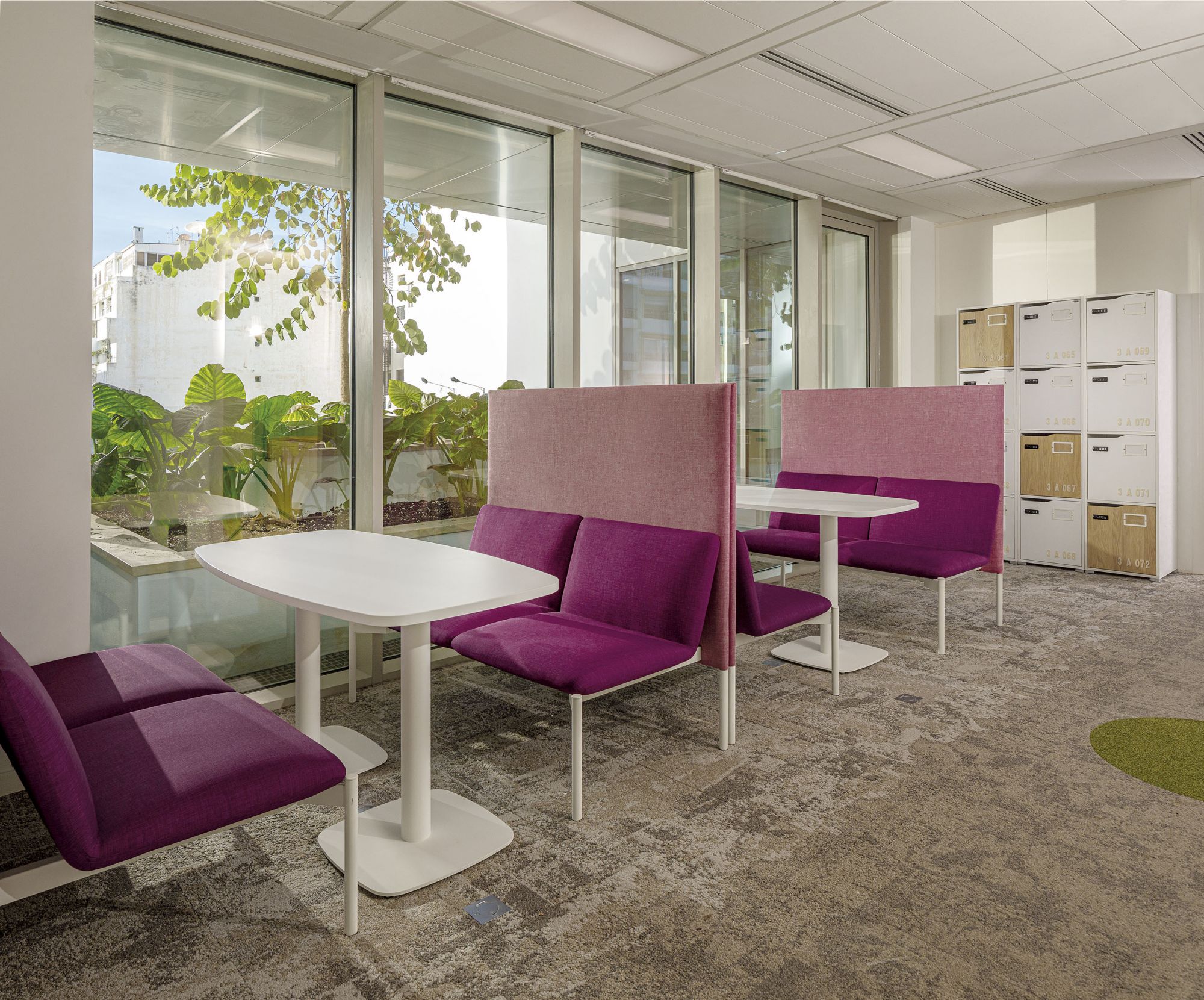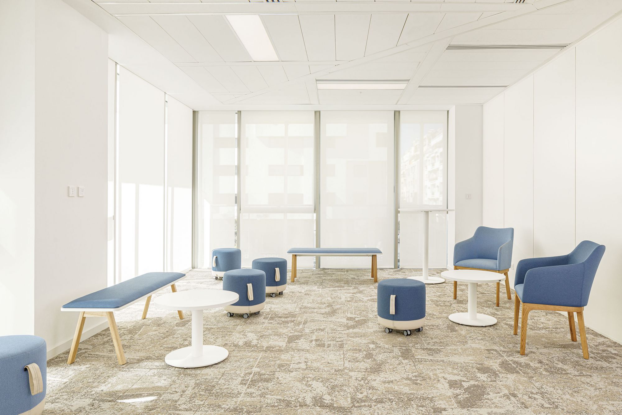 - 244 positions de réunion informelle, réparties en tables hautes, cocons, alcôves ou espaces agiles