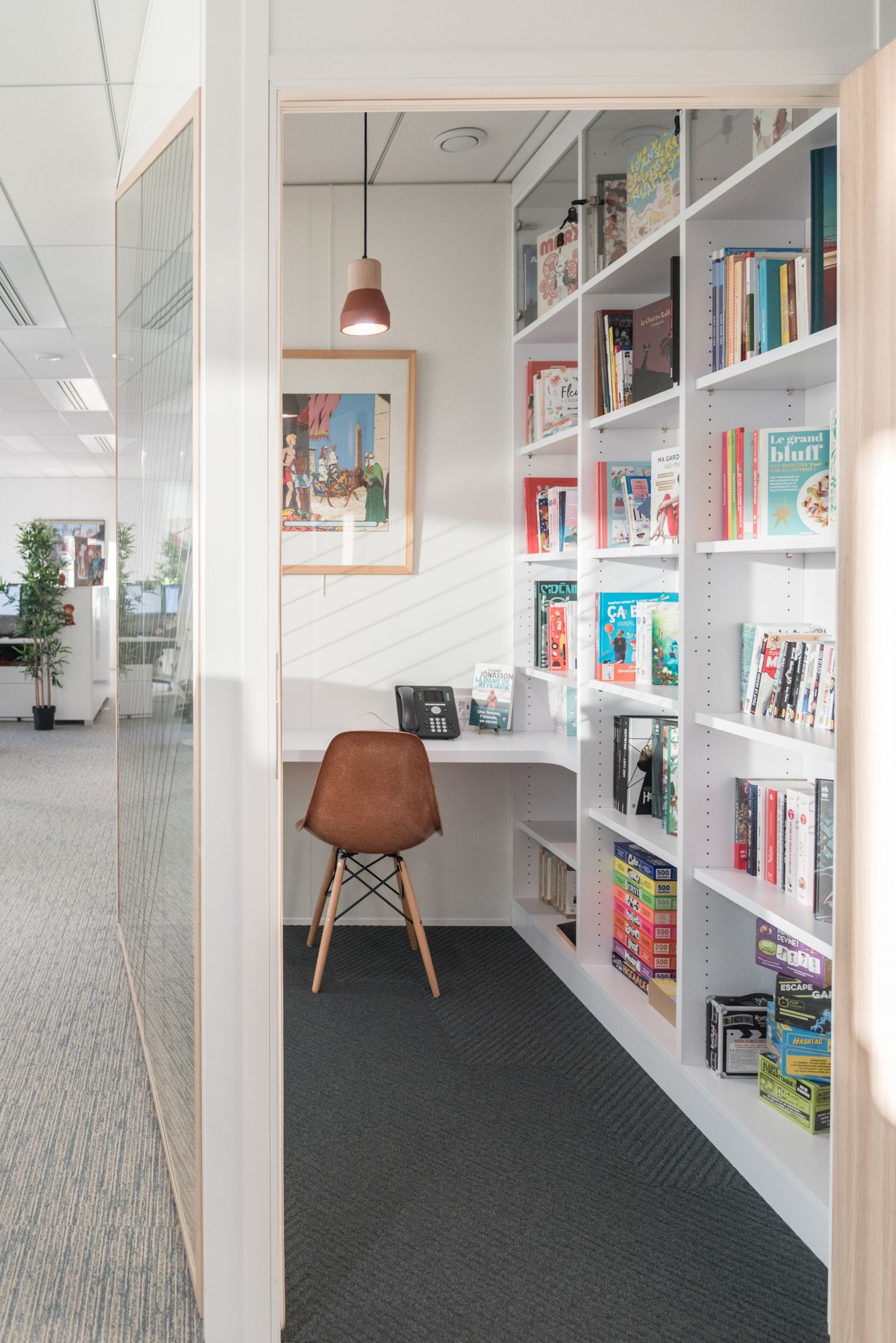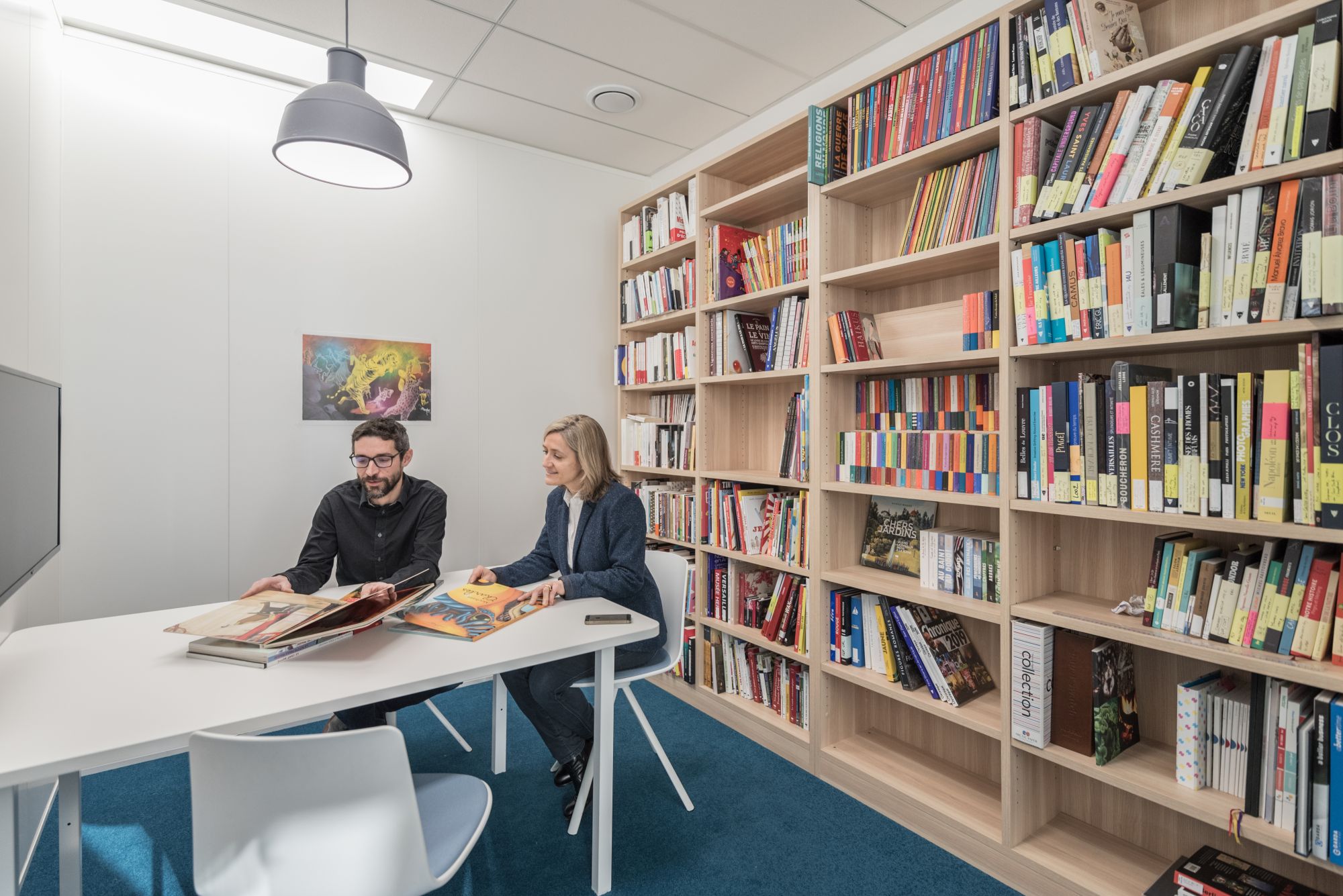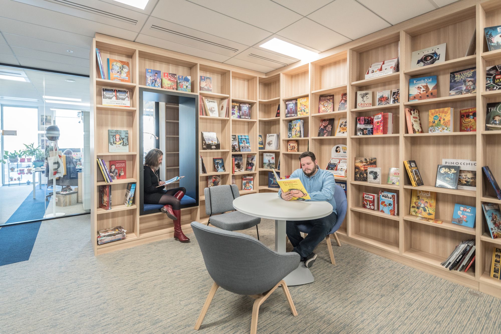 Un aménagement reflétant l’ADN des différentes maisons et mettant en avant la diversité de sa production : livres, BD, presse, audiovisuel