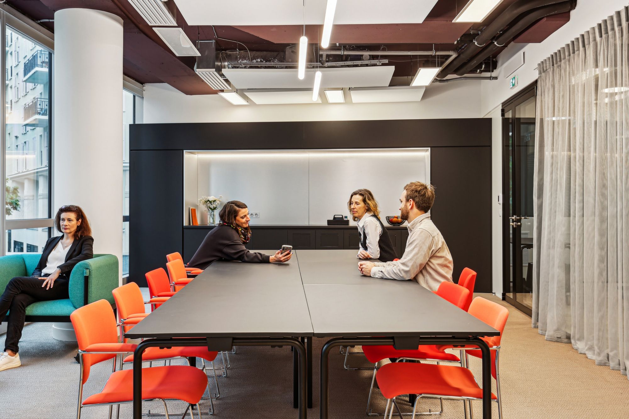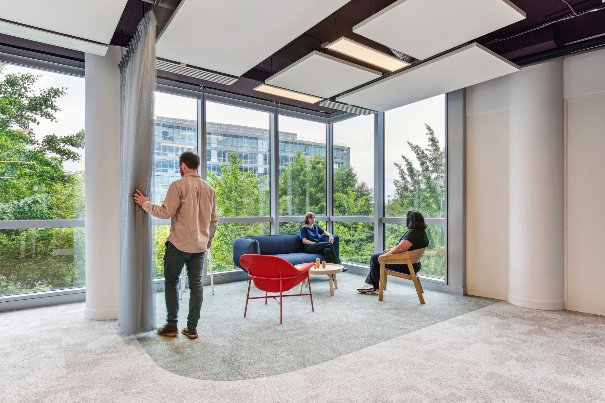 Les bureaux présentent donc ce double aspect, jouant à la fois un rôle de communication pour véhiculer l’innovation du groupe mais faisant du bien être et du confort des collaborateur sa priorité.