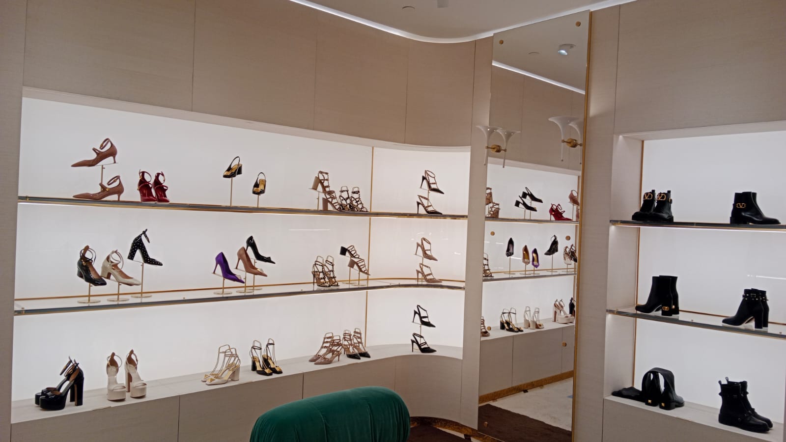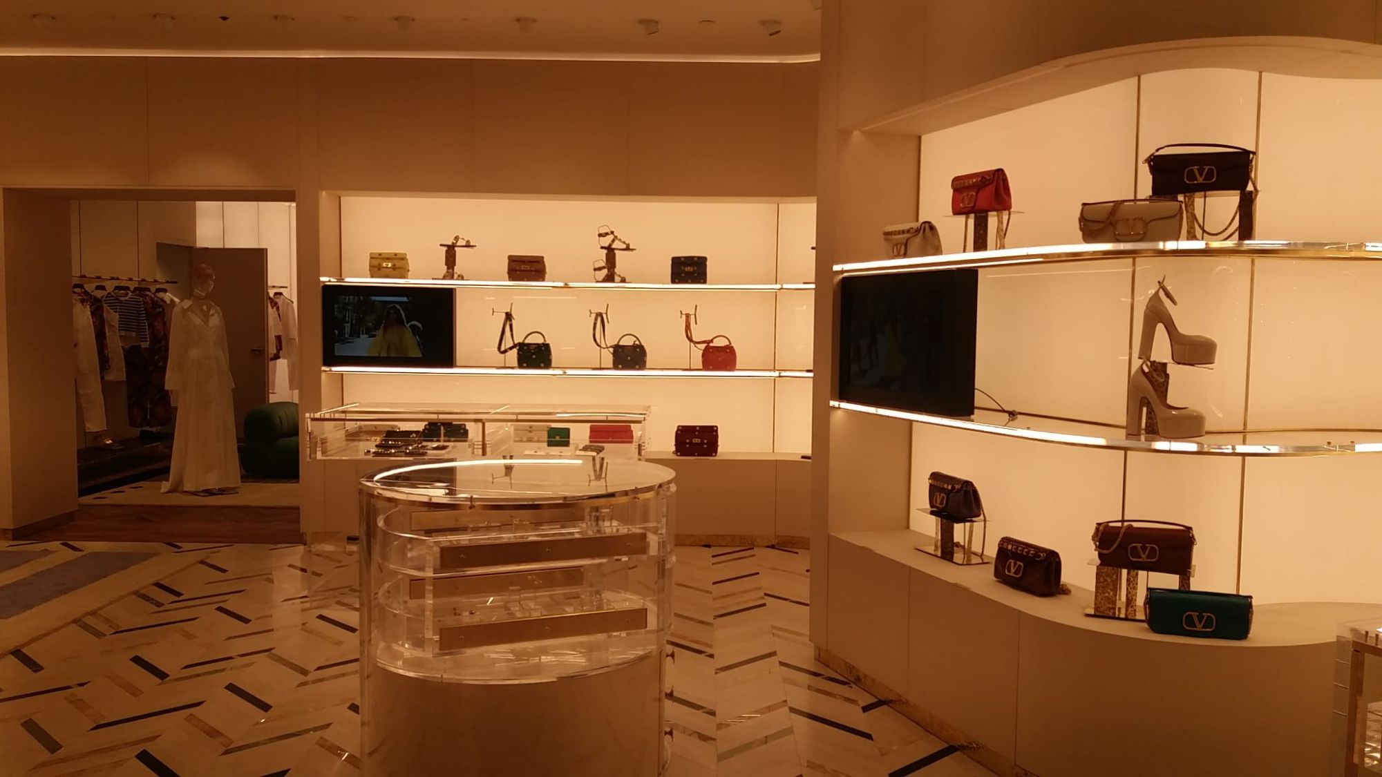L’espace intérieur a été conçu pour refléter l’identité de Valentino, mêlant élégance contemporaine, sophistication et forte dimension créative. La sélection de matériaux nobles, des finitions haut de gamme et une palette chromatique raffinée composent un environnement qui sublime l’expérience sensorielle du client. L’éclairage, soigneusement étudié, met en valeur l’architecture du lieu ainsi que les collections présentées, créant une atmosphère exclusive, en cohérence avec le positionnement premium de la marque.